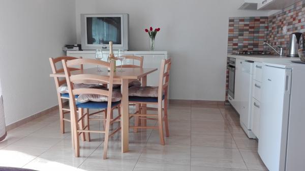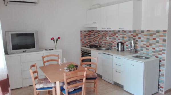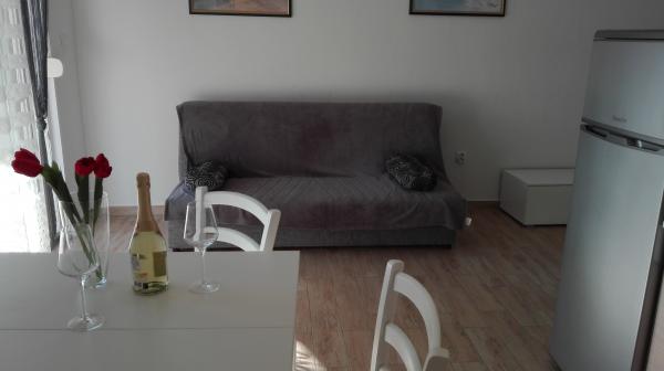 Új ház, teljesen berendezett és modern berendezésű. A házban található egy csendes környéken, közel a strand, éttermek, kávézók és üzletek. Saját parkoló, grill az udvarban, Wi-Fi, internet, műholdas TV-vel. Az apartmanok légkondicionáltak. A lehetőség, hogy egy kis állat (kötelező megállapodás)