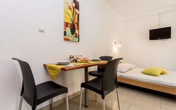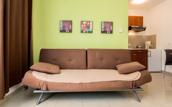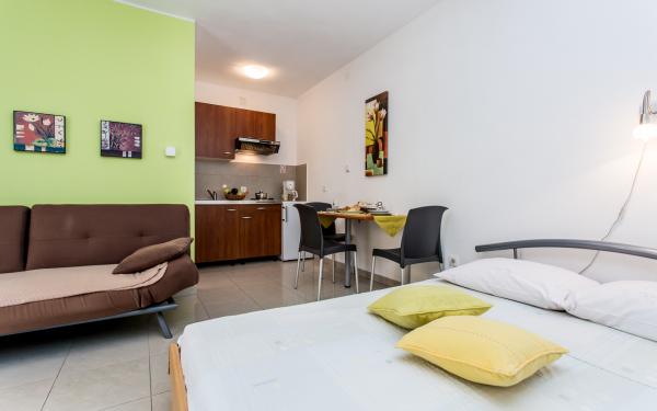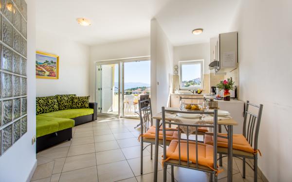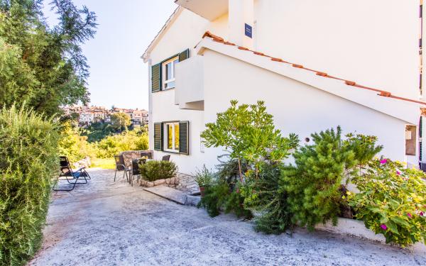 Az apartmanok egy csendes részén, a város, ahonnan gyönyörű kilátás kiterjeszti az óváros és a tenger. Vagyunk körülvéve érintetlen természet és a tenger között, nekünk csak 200 méterre van. Az apartmanok 10 percre a központtól és a strandtól.