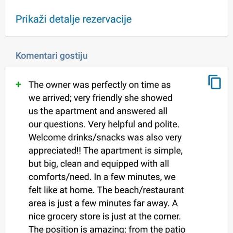 Apartman akkor csak ajánlani. A szállás egy csendes környezetben, barátságos otthon. A tenger tiszta és meleg. Nos, mi megkönnyebbült az egész családnak. Ďakujeme