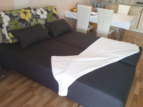 Voltunk 1 hét Zaboric (2 fő) A lakás: A kis, csendes lakás tágas és kényelmes. A konyha fel van szerelve minden szükséges eszközök, ha meg akarja főzni jól felszerelt. Azt légkondicionáló, amely a hűtés után a nap biztosítja. A hálószobában egy franciaágy és egy szekrény. A fürdőszoba is tágas. Összességében a lakás tiszta volt szép. A terület: Nagyon csendes és 1 perc el egy élelmiszerbolt. A strand kb 300 m-re a leírtak szerint. A strandon ettünk az étteremben, és enni a cápa natív finom volt. A tulajdonosok: nagyon meleg és segítőkész emberek. Ennek köszönöm, már meghívást grill és az étel finom volt. A képek a leírás felel meg a valóságnak, és azt ajánlom, hogy tiszta lelkiismerettel. Azt, hogy ott újra nyaralást. Ez volt a szép időt.