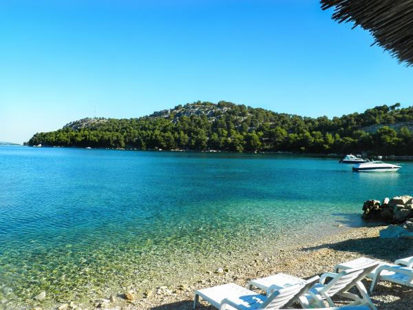 A tágas és modern apartmanok mindössze 30 méterre a strandtól, tengerre néző, ingyenes Wi-Fi-t és parkolási lehetőséget. Minden apartman saját konyhával és fürdőszobával. A létesítmény található, mindössze 5 perc sétára a városközponttól, éttermek és kávézók. A legközelebbi bolt 15 perc alatt elérhető. A látogatók választhatnak a kő, kavics, homok és beton tengerpart. Van egy ingyenes rámpa elindításához és eltávolítása csónak a tenger. Vannak röplabda és vízilabda pálya, és egy játszótér homokozóval. Rendszeres autóbusz-járatok Žaborić helyi helyeken. Sibenik központja mindössze 12 km-re, a Krka Nemzeti Park 25 km-re, a Kornati Nemzeti Park szervezett turisztikai hajózás a nyári szezonban.