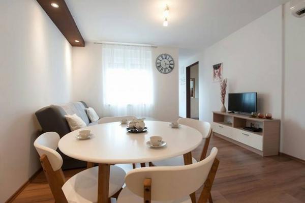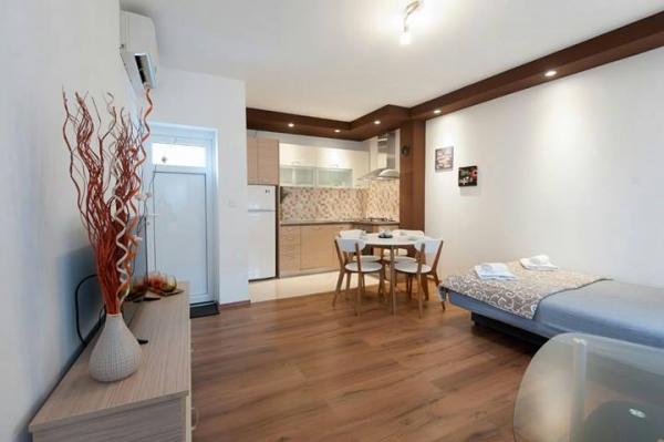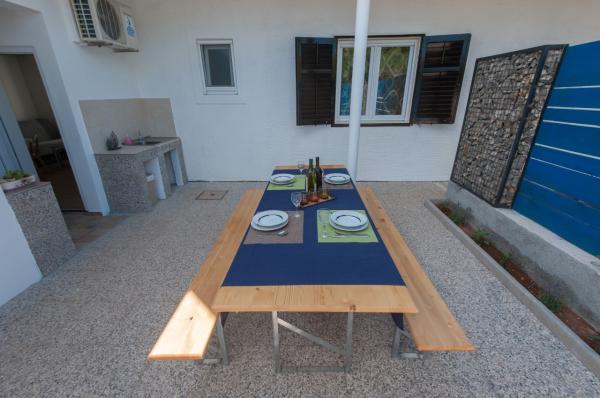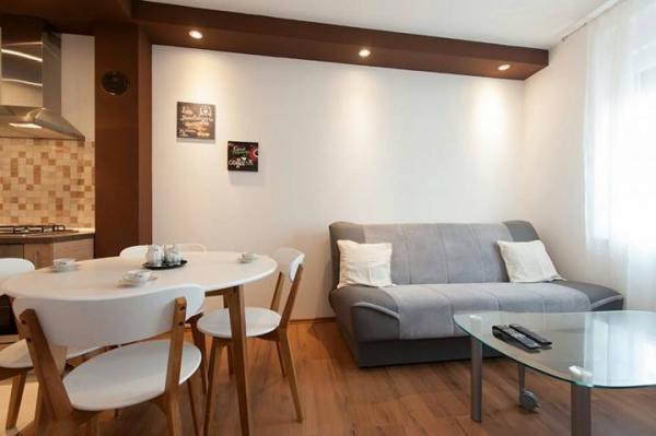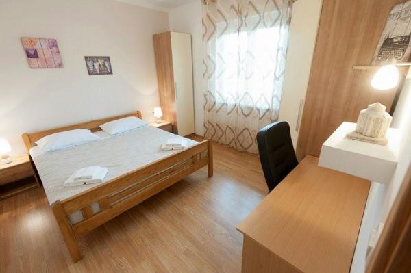 A lakás kiválóan alkalmas családok, található egy csendes részén Zadar, természeti környezetben. Az apartman egy külön szoba egy dupla ágy és a nappaliban van egy kanapé. Ha szükséges, extra ágy a szobában. Nem található családi házban, külön bejárattal. Nem található a földszinten, saját parkoló, fedett természetes árnyékot. Megosztása egy fedett kandalló (grill) a házigazdák. Ingyenes wi-fi.