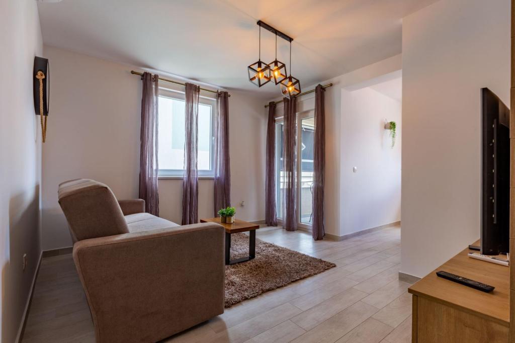 Zadar város elit részén Borikban kiadó egy teljesen berendezett lakás, teljesen felszerelt mosógéppel és két klímával, népszerű éttermek, üzletek 100 m-re, a strand 15 perc sétára található. , a lakás terasza déli fekvésű és tengerre néz, parkoló biztosított, a lakás új építésű