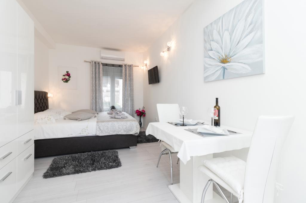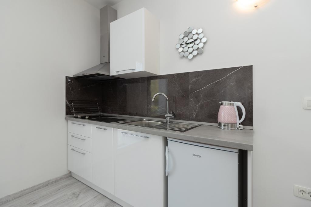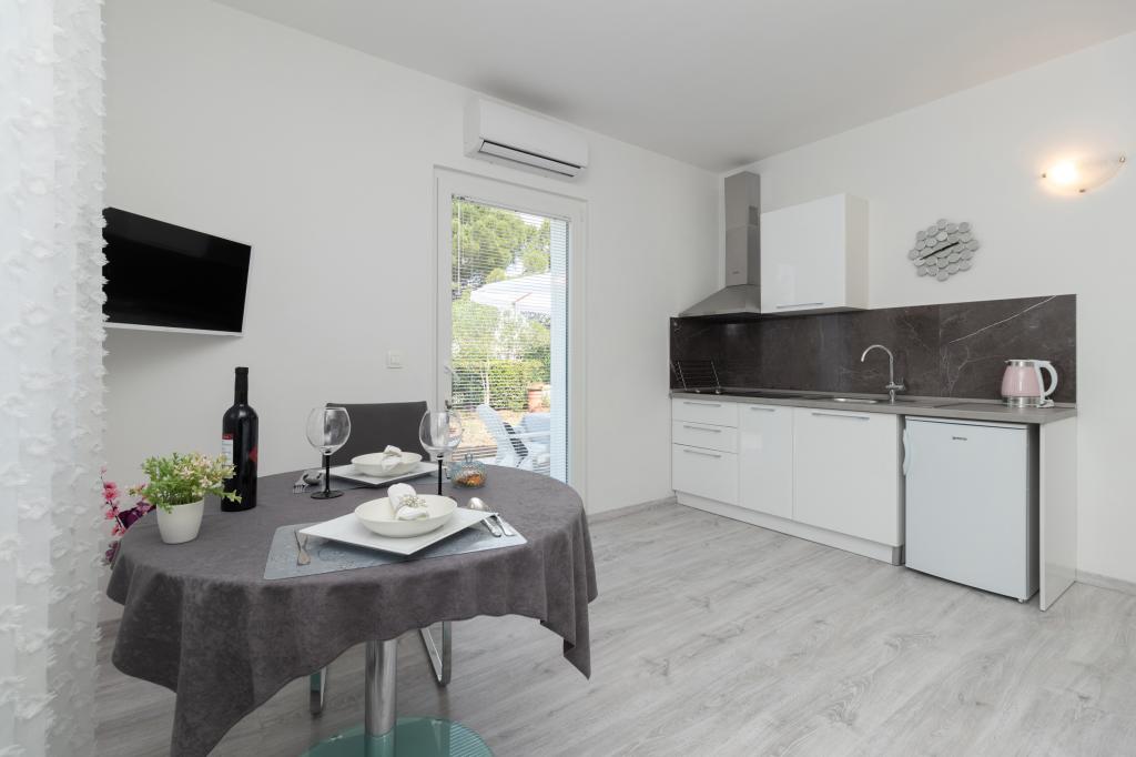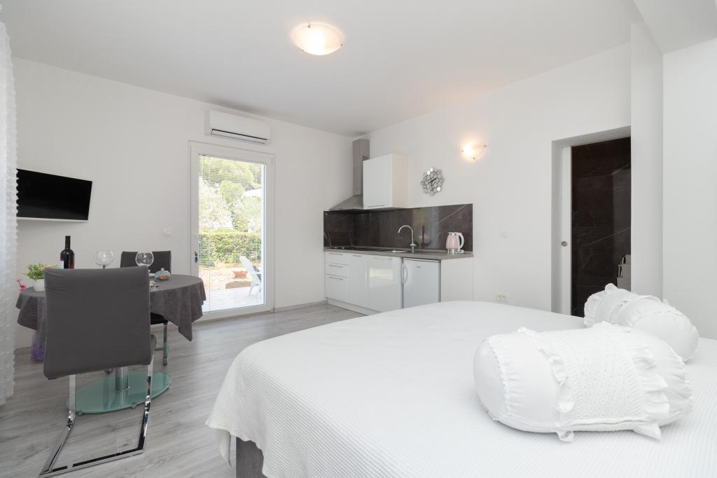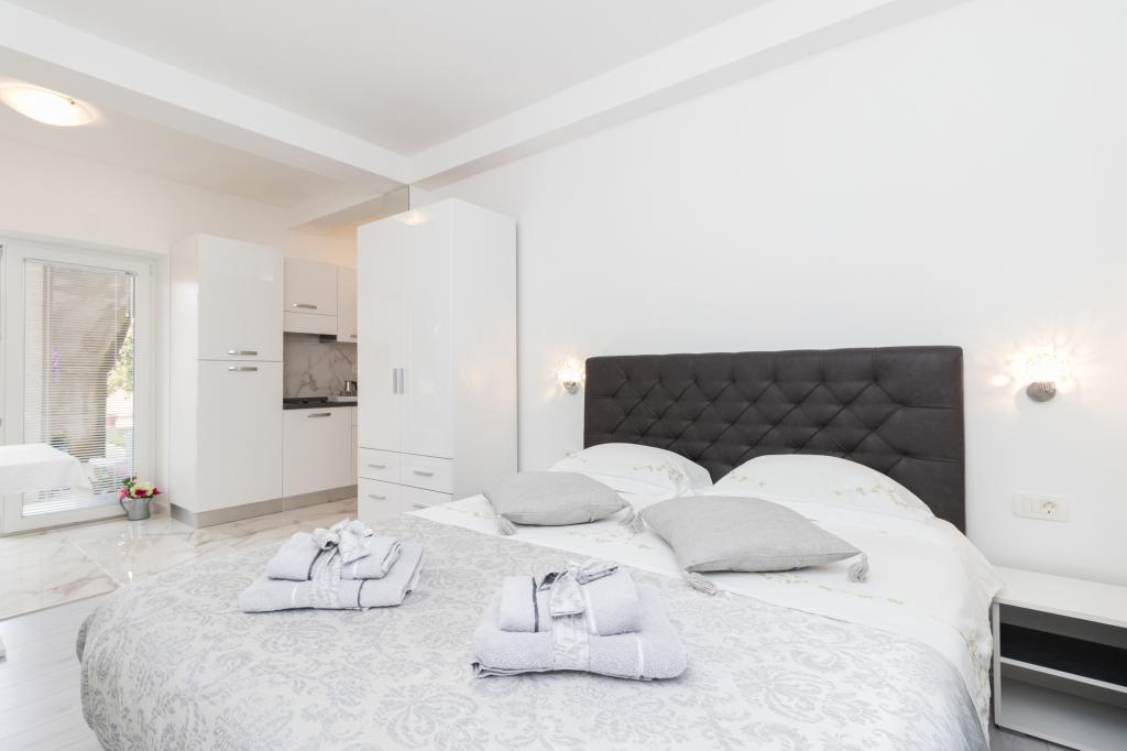 A modern felszereltségű apartmanok csendes környezetben, parkosított kerttel helyezkednek el, ideálisak a pihenésre és a szabadban töltött időre. Az ingatlan a kényelem és a funkcionalitás tökéletes kombinációját kínálja, és minden apartmant gondosan berendezettek, hogy biztosítsák a vendégek kellemes tartózkodását. A helyszín rendkívül praktikus, a vasútállomás mindössze 10 perc sétára, a repülőtér pedig 15 perc autóútra található, ami megkönnyíti az érkezést és az indulást. Autóval érkezőknek lehetőségük van biztonságos parkolásra az ingatlanon belül. Minden szükséges szolgáltatás, például üzletek, éttermek és kávézók a közelben található, míg a kavicsos strand mindössze 7 perc sétára található.