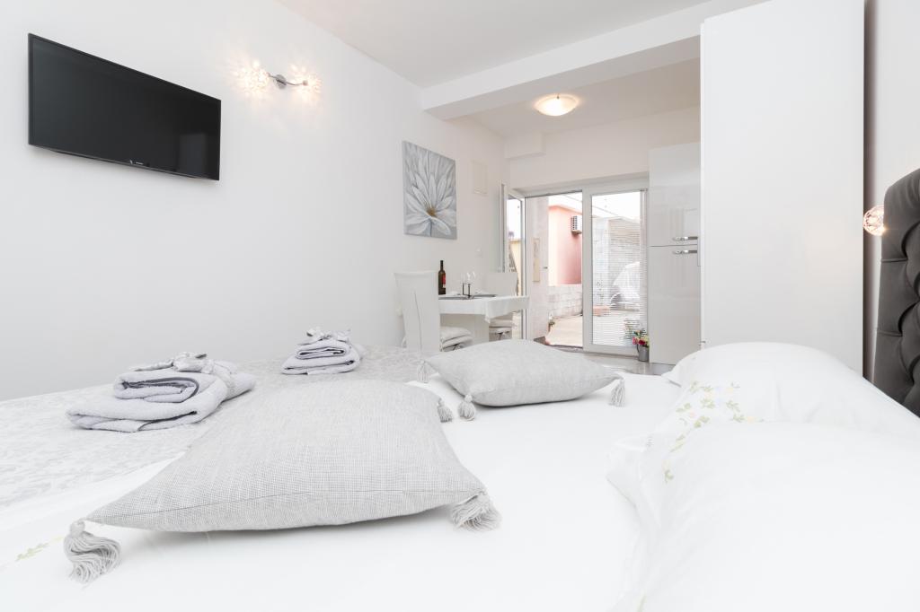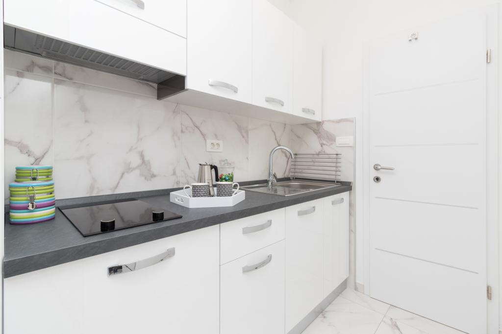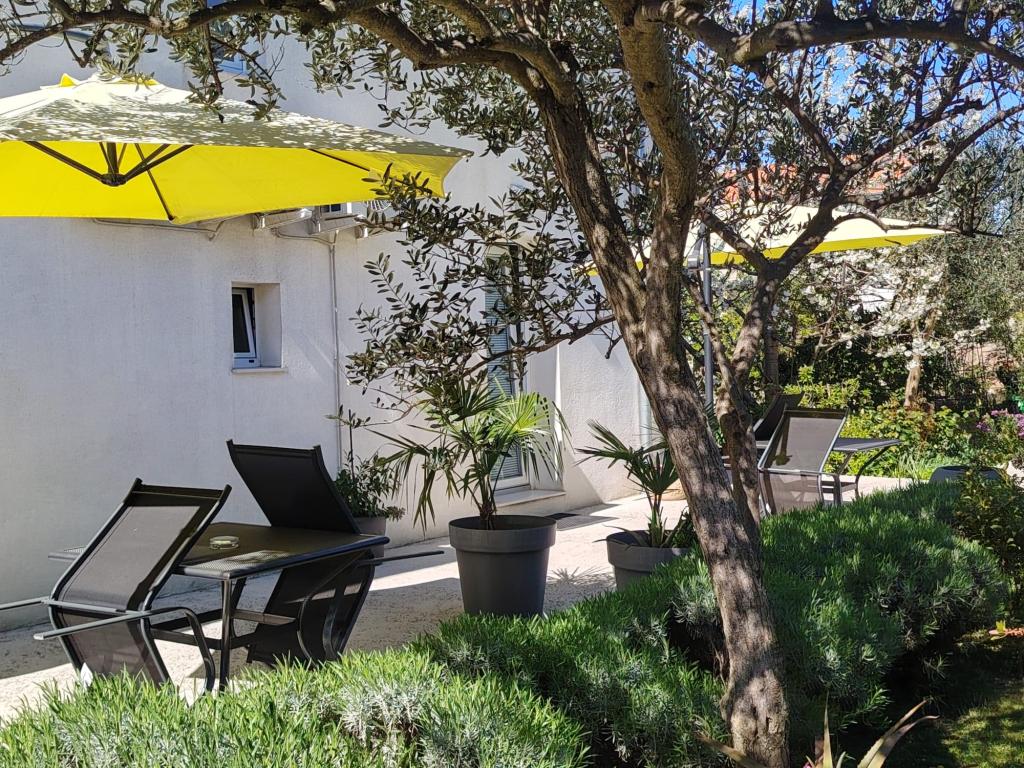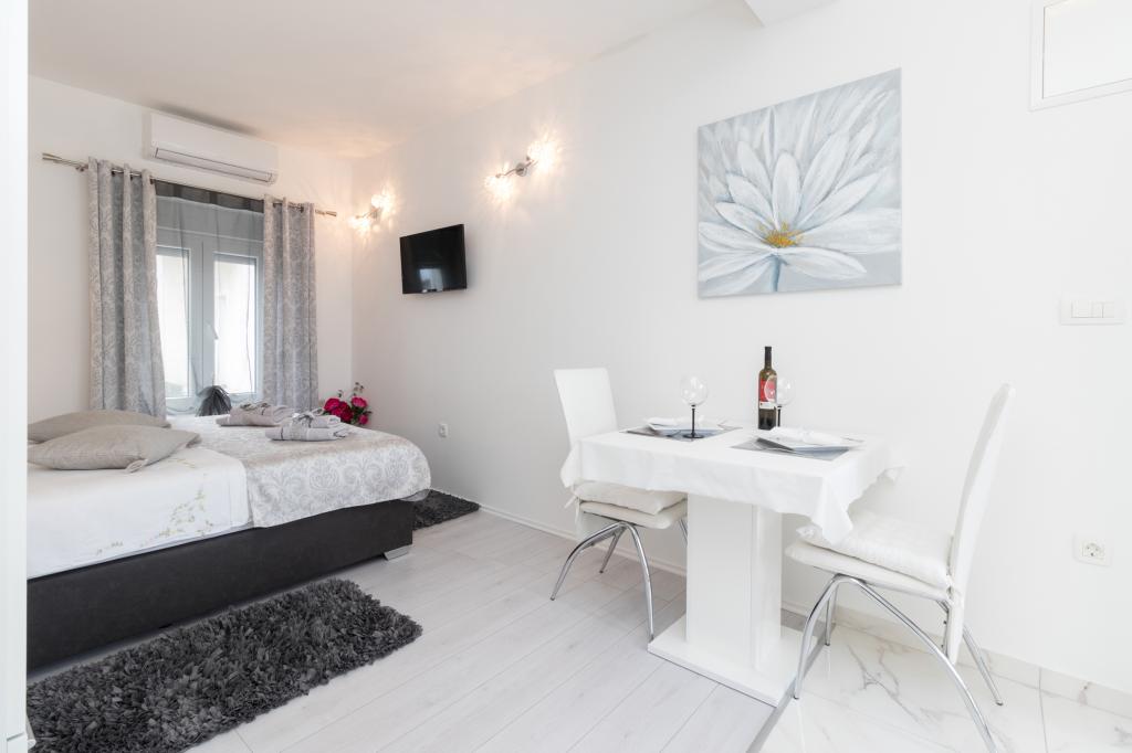 A modern felszereltségű apartmanok csendes környezetben, parkosított kerttel helyezkednek el, ideálisak a pihenésre és a szabadban töltött időre. Az ingatlan a kényelem és a funkcionalitás tökéletes kombinációját kínálja, és minden apartmant gondosan berendezettek, hogy biztosítsák a vendégek kellemes tartózkodását. A helyszín rendkívül praktikus, a vasútállomás mindössze 10 perc sétára, a repülőtér pedig 15 perc autóútra található, ami megkönnyíti az érkezést és az indulást. Autóval érkezőknek lehetőségük van biztonságos parkolásra az ingatlanon belül. Minden szükséges szolgáltatás, például üzletek, éttermek és kávézók a közelben található, míg a kavicsos strand mindössze 7 perc sétára található.