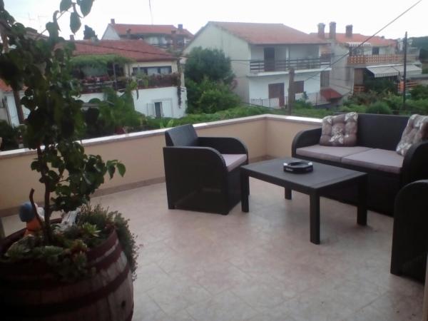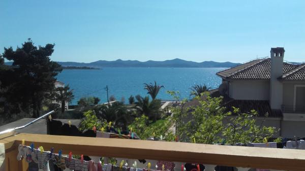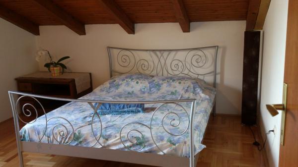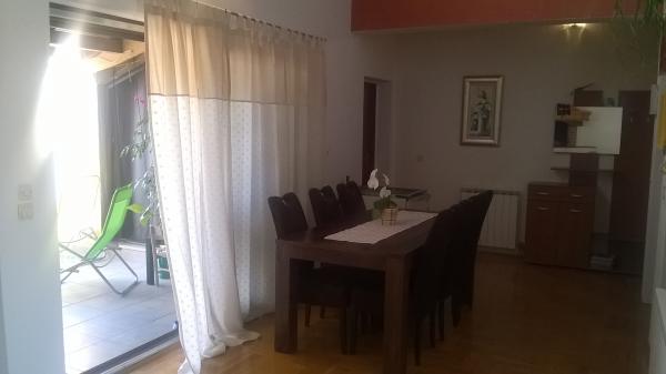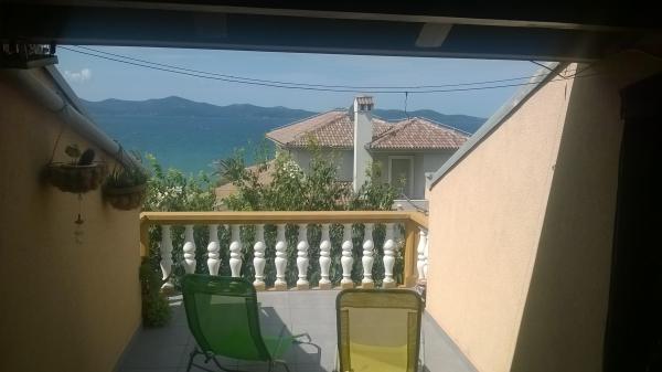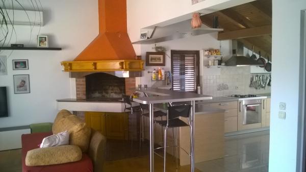 Az apartman található, a tetőtérben a ház, 125 m2, mintegy 50 méterre a tengertől. Három hálószoba, fürdőszoba, nagy nappali kandallóval, légkondicionáló, teljesen felszerelt konyha és két nagy erkéllyel. Szükség esetén is vannak, és etetőszék, egy gyermek számára. Parkolás az autó az udvaron előtt a lakások, a háziállatok várjuk.