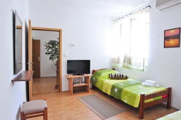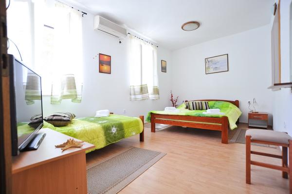 Ezek szép szoba és egy apartman központjában Zadar. Ha jelenleg uralja a teljes csend és nyugalom, mindig szép, ha lehet aludj és kandikál ki ott érzi, az igazi szelleme a város. Ezek szó szerint az első házban, mikor bement a régi város, a jobb oldalon. A ház része a történelem, a város Zadar, egy gyönyörű kő. Van szoba 4 fő részére, egy nagy franciaágy és egy kanapé, egy gyönyörű terem, ahol lehet reggelizni. Ez wi-fi, hűtőszekrény, vízforraló, edények, műholdas TV-vel és természetesen légkondicionált. A másik oldalon a ház három hálószoba és egy konyha, hogy mi kiadó együtt, mert egy fürdőszoba, minden beállítva, hogy megkapja azt a részét, 7 fő. Egy szoba három ággyal, a másik kettő található egy romantikus padláson tetőablakok és mindkettő dupla. Úgy is van egy teljesen felszerelt terem, mint az előző szobában. Minden messze van a szobában csak 5 perc séta. Minden múzeumok, antik üzletek, gyógyszertárak, és a nyilvános parkolás csak a szoba mellett. Szívesen.