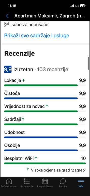 Nagyon szeretek Zágrábba jönni, főleg békéje és zöldje miatt, és mert azon kevés városok egyike, amely megőrzött valamit régi lelkéből. Ezért örültem, hogy megtaláltam ezt a hangulatos apartmant a nagy park Makszimir közvetlen közelében, a békés Ravnice-ben, fákkal dúsan díszítve. Még egyszer hangsúlyozom a békét és a csendet, a zöldet, és a tisztaság illatát és az otthon melegét, amit ez a lakás nyújt. A tulajdonos zenész és értelmiségi, művelt, sok területen tehetséges, kiváló beszélgetőpartner. És valószínűleg az egyetlen író, aki gazdája lesz az életében. A biztonságos parkolás plusz bónusz. Ha olyan érzést szeretne, mint Lev Tolsztoj Jasna Poljana-i birtokán szállni, ez a legközelebbi dolog, amit Zágrábban találhat.