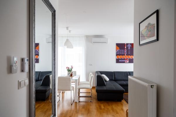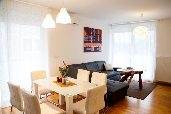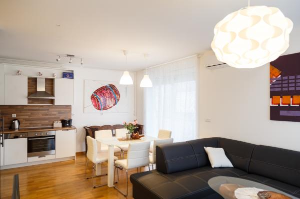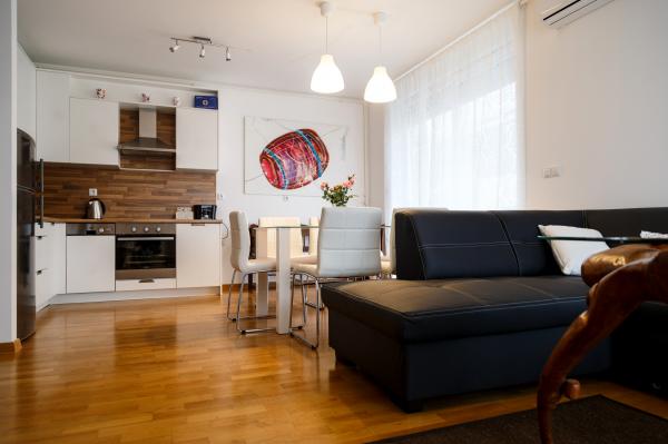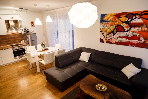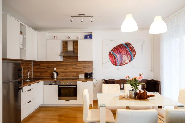 ART Lake Apartments, hogy 3 luxus lakosztály jacuzzival és nagy erkéllyel, egy új, teljesen felszerelt konyha, hálószoba dupla vagy szimpla ágy található, kiváló helyen, közel a városközponthoz, és az az előnye, ez a hely, hogy egy csendes, zöld környezetben, és mégis közel a központhoz, amely mindössze 10 perc alatt. villamossal vagy autóval. Előtte a lakások van egy saját zárt parkoló és ingyenes. Apartmanok A1, A2 és A3 található a földszinten, 1. és 2. emeleten az épület. Ezek bérelhetők együtt, és is kap maximum 16 fő. Ideális szállást, mert azt a képességét, hogy 16 fő, és mindazok számára, akik szeretnék röviden menekülni a város tömeg és élvezze ezt oázis a zöld és a béke, hanem élvezik a tó Jarun, kávé, éjszakai élet, a jó ételeket, úszás vagy talán sportágban. A zöldövezetben, járdák, utak futás, kerékpározás, vízi sportok, hanem mindössze 50 méterre van a két éjszakai
