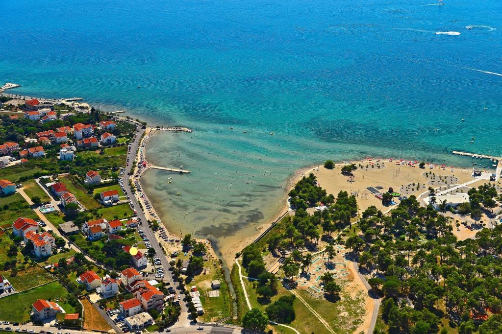 Közelben: - Zaton Turisztikai Központ - 60 m - Játszótér - 20 m - Kávézó - 20 m - Étterem félpanzióval - 30 m - Pékség - 40 m - Kioszkok strandfelszerelésekkel - 40 m - Szabadtéri edzőterem - 40 m - Zadar - 12 km - Nin - 1 km A strandon zuhanyzók, öltözők és WC-k találhatók. A strandon nyugágyak, napernyők, vízibiciklik és egyéb szolgáltatások bérelhetők. 100 km-es körzetben nemzeti parkok találhatók: Paklenica, Kornati, Plitvicei-tavak, Krka és Észak-Velebit.