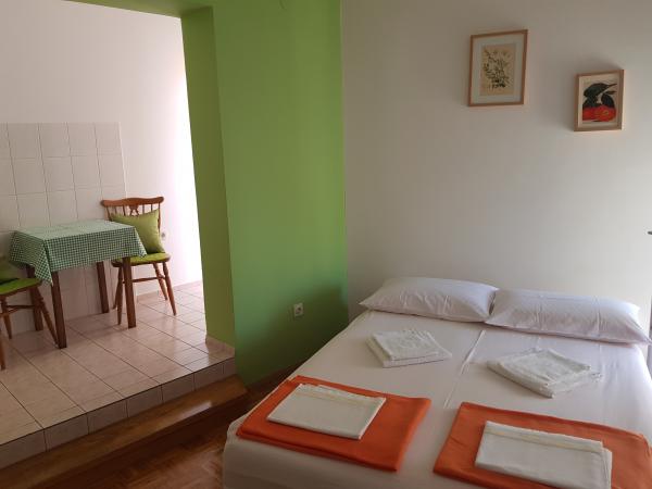 Ez a nyaralás nővér azt javasolta, hogy Mrs. Aida többször a családommal és nagyon meg volt elégedve velük. Igaza volt, nagyon elégedettek voltunk Mrs. Aida, a hölgy hihetetlenül segítőkész és barátságos, a törölközőket minden nap, tartózkodó közepén változó az ágy, tiszta, szuper. Nagy terasz, kavicsos strand, csendesebb környezetben, de a megfelelő strand. Sütemény, gyümölcs + zöldség, fagylalt, palacsinta, burgonya, látnivalók gyerekeknek stb néhány étterem, ahol nem termelnek kiváló pizza. Ott voltunk tíz nap és két éjszaka élő zene a strandon szervezett versenyek gyerekeknek. Tengerészek grillezett friss hal, nagy esemény!
