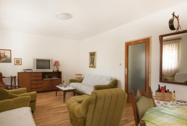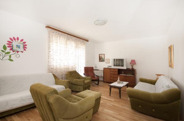 A ház a sziget Zlarin található, egy csendes helyen, távol a strand 150 méterre és a központ 400 m. A ház kétszintes körülvett ingatlan 1000 négyzetméteres, ahol az olajfák, szőlő, füge .... A a földszinten található egy nagy nappali, konyha külön ajtó a nappali és egy kis fürdőszoba. A nappali nyílik egy nagy terasz 35 négyzetméter kézzel készített fa asztal 7 fő részére két pad, hinta, kerti bútorok és napozóágy. Terasz tartozik. Az első emeleten három hálószoba, egy nagy franciaágy és egy egyszemélyes ágy, közepes méretű szoba egy dupla ágy és egy egyszemélyes ágy és egy kis szobában egy egyszemélyes ágy található. Mindhárom szobában való egy nagy felső terasz nyílik a tengerre. A felső emeleten, a ház, ahol a szobák légkondicionáltak. Ingyenes WI-FI. Van is egy fürdőszoba káddal, WC-vel mosdókagyló és WC. A házban van egy szabadtéri zuhanyzó napenergia meleg és hideg víz.