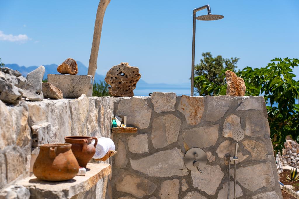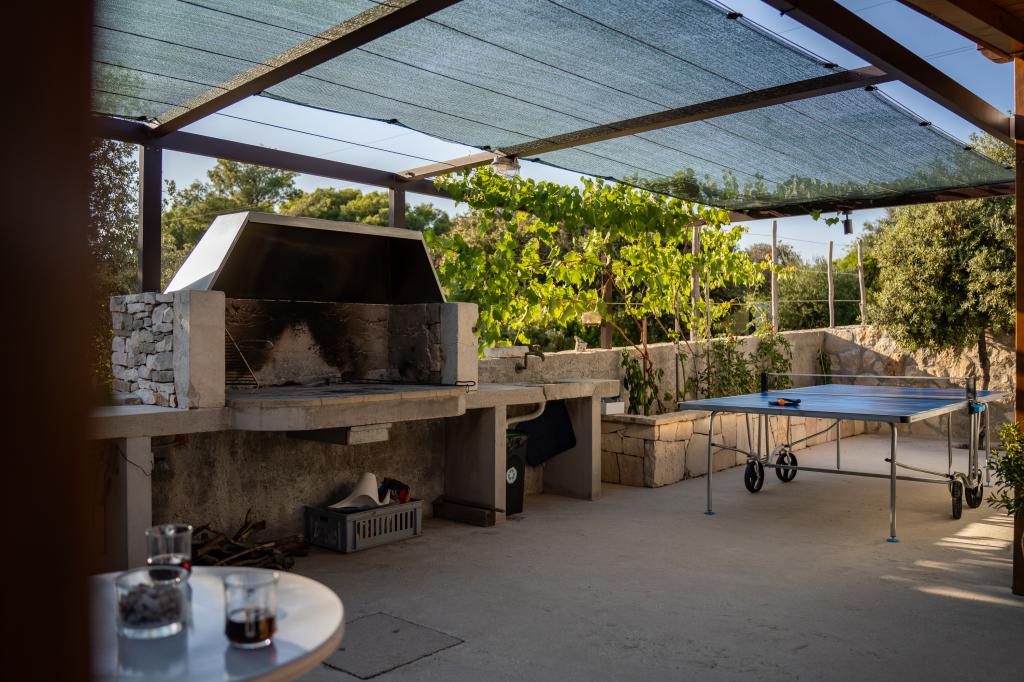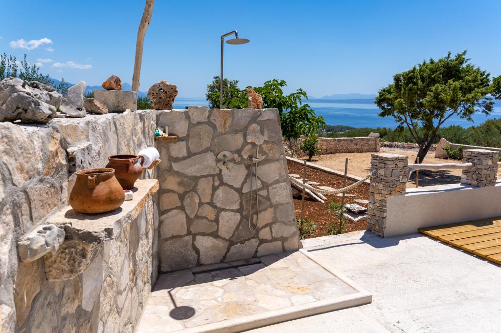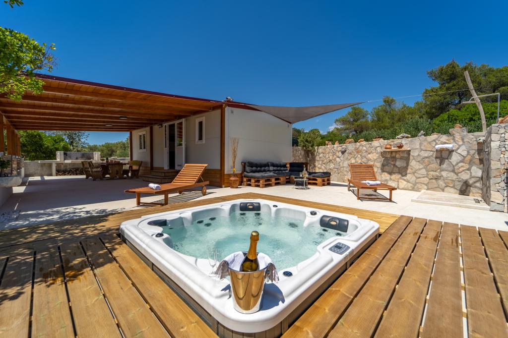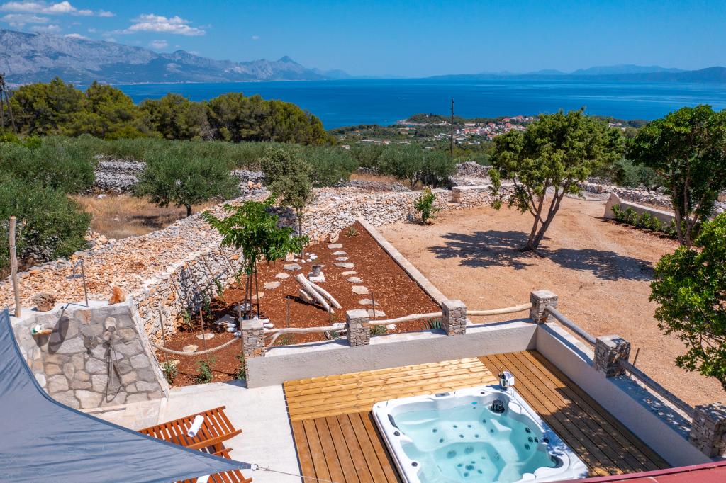 A Robinson ház Bawa ideális hely a mindennapi élet elől menekülni. Olajfaligetek, Brač kövei és a tenger illata veszi körül, így tökéletes lehetőséget kínál arra, hogy minden pillanatot élvezhessen. Mindössze 1,5 km-re található Sumartin autentikus városától, teljes magánéletet kínál, de minden szükséges szolgáltatás és kényelem elérhető közelségben van. Jöjjön el, és köszöntse a reggelt a Biokovo-hegyre és a napsütötte Hvarra néző kilátással a saját jakuzzijából. Pihenjen a közeli strandokon, és élvezze a naplementét szeretteivel. Fedezzen fel egy emlékezetes élményt - egy olyan nyaralást, amilyet még soha nem tapasztalt! Amit kínálunk: ingyenes parkolás, kilátásos jakuzzi, pihenősarok, kültéri zuhanyzó meleg vízzel, étkező, grillező a szükséges felszereléssel, nappali (Wi-Fi, TV és mennyezeti ventilátor), konyha (tűzhely, mosogató meleg vízzel, hűtőszekrény, fagyasztó, Nespresso kávéfőző, fűszerek...), 2 hálószoba és 2 fürdőszoba (ágynemű és törölköző benne van az árban). Minden ablakon redőnyök és szúnyoghálók találhatók.