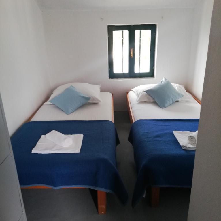 A Žut nyaraló közvetlenül a tengerparton található. Ez egy kétszintes ház két hálószobával: egy egyágyas és egy kétágyas szobával, valamint egy kanapéval. A ház 40m2 nagy kerttel 500m2, terasszal és erkéllyel. A ház fel van szerelve vezetékes vízzel, 220 V-os árammal (napelemekkel), internettel, TV-vel, hűtőszekrénnyel fagyasztóval, gáztűzhellyel, grillel és kültéri és beltéri zuhanyzóval. A ház a Strunac-öbölben található, ahol a Bain étterem is található. A közeli öblökben más éttermek is találhatók, amelyek gyalogosan is elérhetők.
