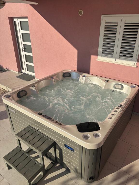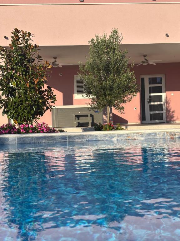 Egy csendes és kellemes sarok a nyaraláshoz. Podlug kis falujában találhatóak vagyunk, Benkovactól 6 km-re délre, az A1-es autópálya benkovaci kijáratától 2 km-re. Három hálószobát és három fürdőszobát kínálunk. A földszinten egy hálószoba, fürdőszoba, konyha és nappali található, az emeleten pedig két hálószoba, két fürdőszoba és egy másik nappali - egy játszószoba. A létesítményben egy kandallós szoba is található. A létesítményhez tartozik egy 8 x 4 méteres kültéri medence is.