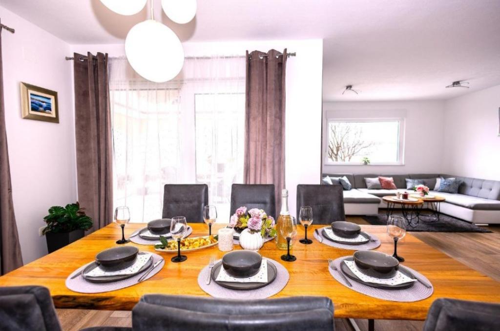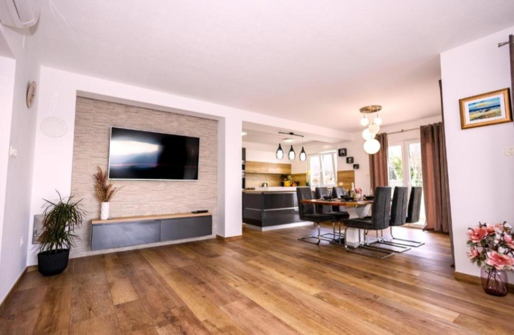 A Villa Pepinela**** rendkívül nyugodt környezetben található, ugyanakkor nagyon közel a tengerhez, minden olyan szolgáltatáshoz és nyári rendezvényhez, amely garantálja a csodálatos nyaralást. Fel van szerelve egy 8x4-es úszómedencével és egy magaslaton elhelyezkedő napozóterülettel, valamint egy nagy terasszal, ahonnan gyönyörű kilátás nyílik a tengerre és Vinodol természeti szépségeire. A házban egy fedett terasszal és kandallóval rendelkező fogadó is található a társasági élethez. A villa zárt garázsban vagy bekerített udvarban kínál parkolási lehetőséget. A legkisebbek számára egy bekerített réten játszóteret alakítottunk ki. A környék számos szabadidős sportolási lehetőséget kínál. A villa kellemes és teljesen felszerelt belső tere felejthetetlen nyaralást tesz lehetővé.