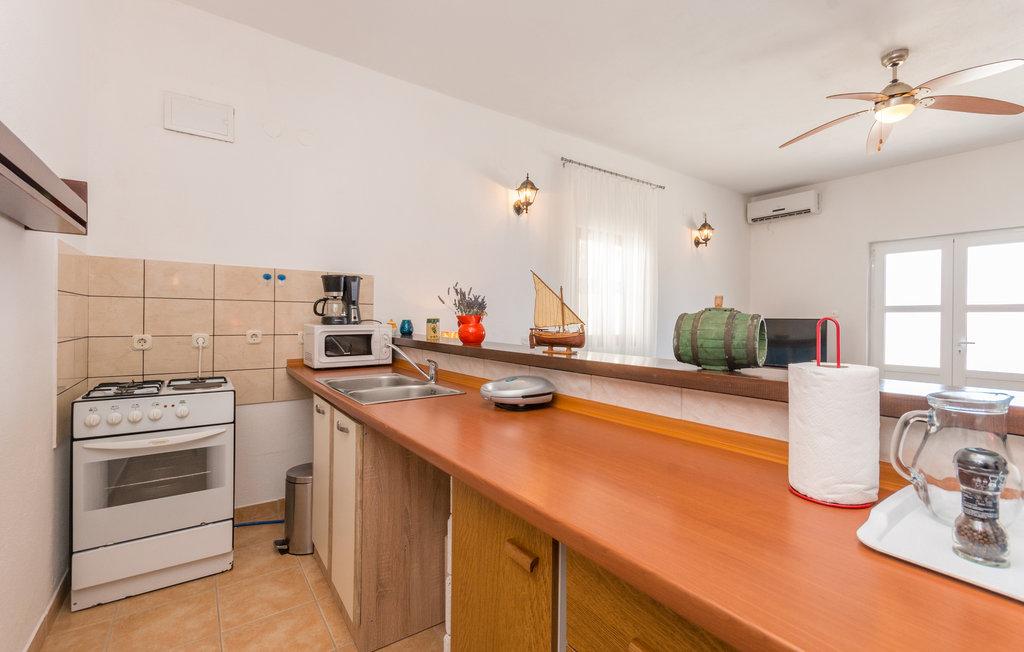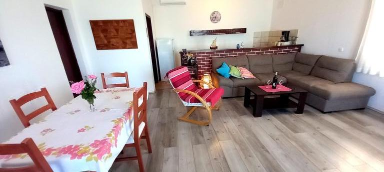 A tágas terasz kényelmes nyugágyakkal és napernyőkkel, gyönyörű kilátással a tengerre, kiválóan alkalmas arra, hogy itt töltse nyaralását. Pihenjen családjával ebben a kellemes szálláshelyen. Mali Iž, az Ugljan és Dugi Otok közötti középső csatornában, további szigetek veszik körül. A komp- és hajójáratok gyors eljutást tesznek lehetővé. Az éttermekben finom helyi borokat és ízletes dalmát ételeket szolgálnak fel. A nyaraló egy tágas közös helyiségből, nappaliból, konyhából és étkezőből - nyitott térrel, két hálószobából és egy fürdőszobából áll. Az egyik hálószobában egy 160×200 cm-es franciaágy, a másik hálószobában pedig egy 90×200 cm-es emeletes ágy található. A házhoz egy tágas terasz tartozik, ahonnan 10 méterre található a tenger. A ház mellett kandalló és grillező található. Ingyenes parkolás áll rendelkezésre a szálláshely közelében található nyilvános területen.