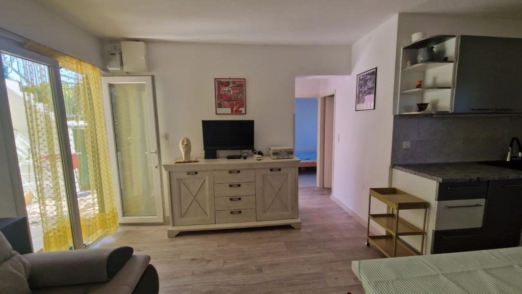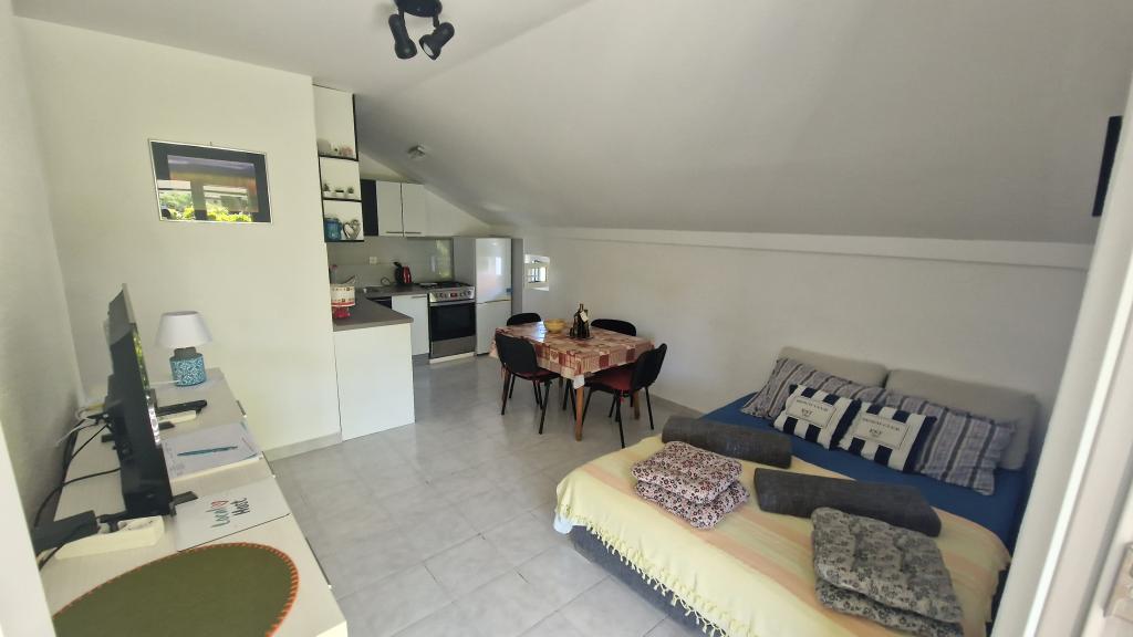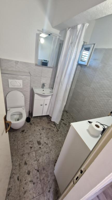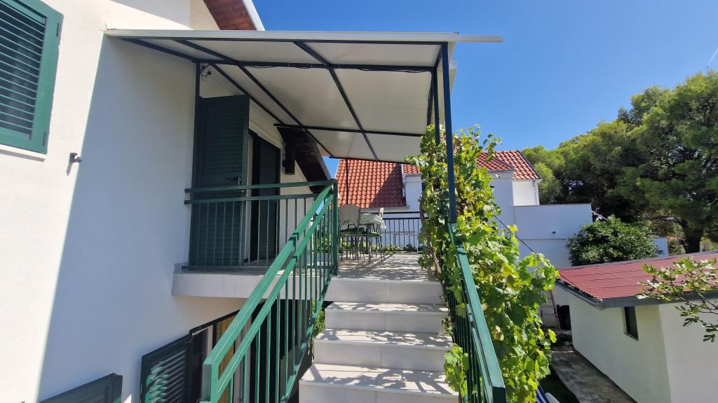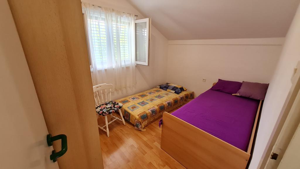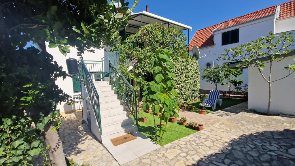 A ház két teljesen felszerelt apartmanból áll (földszint és emelet), összesen 8 fő befogadására alkalmasak. Az apartmanok különállóak, és a ház egyben is bérelhető - ideális megoldás két család vagy egy baráti társaság számára, akik együtt szeretnének nyaralni, miközben megőrzik a magánéletüket. Minden apartmanban nappali, konyha, fürdőszoba, 2 hálószoba és saját fedett terasz található - tökéletes hely a reggeli kávézáshoz, ebédhez az árnyékban vagy esti társasági összejövetelekhez. A ház ingyenes parkolási lehetőséggel (max. 3 autó), Wi-Fi-vel, légkondicionálóval és TV-vel rendelkezik mindkét apartmanban. A helyszín kiváló kirándulásokhoz Šibenikbe (12 km), Vodicébe (10 km) és a közeli Krka és Kornati nemzeti parkokba. A közelben található egy bolt, étterem és egy jól karbantartott, tiszta tengerrel rendelkező strand.