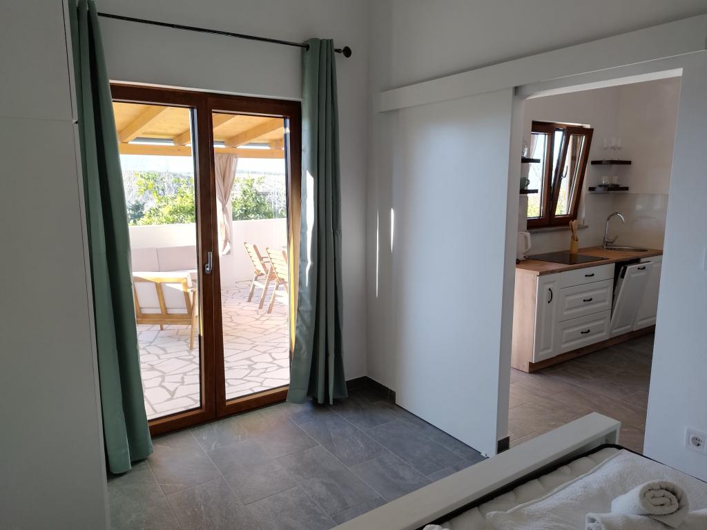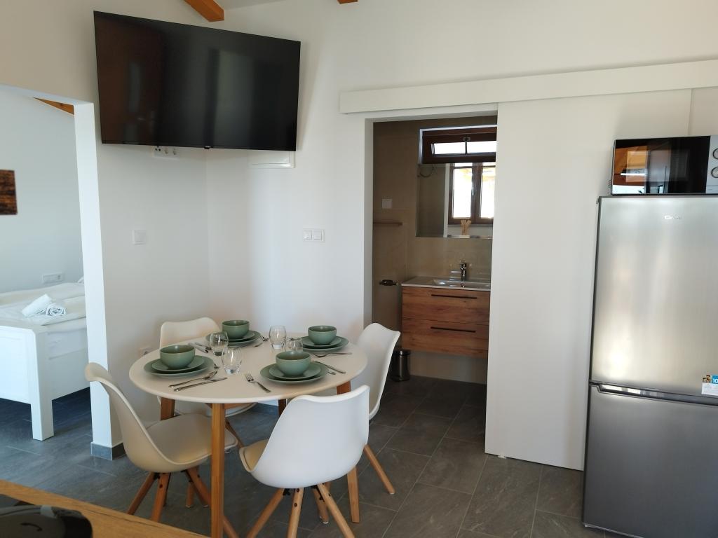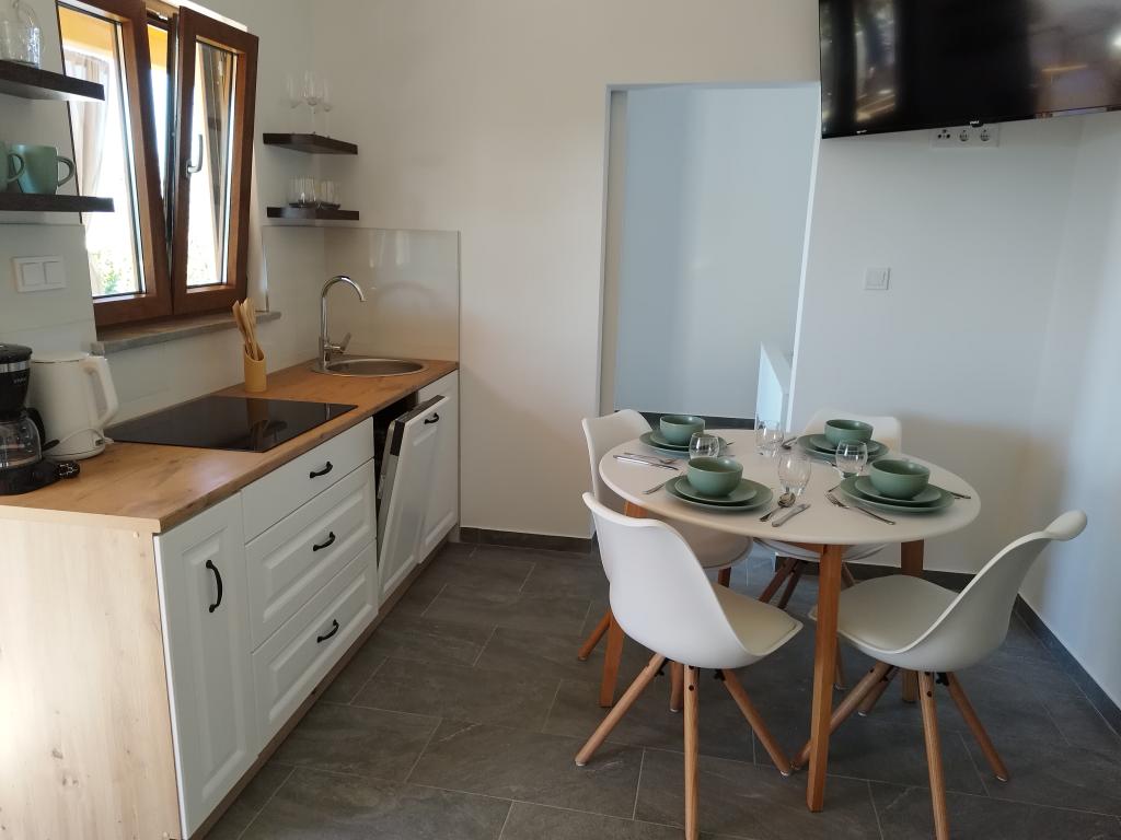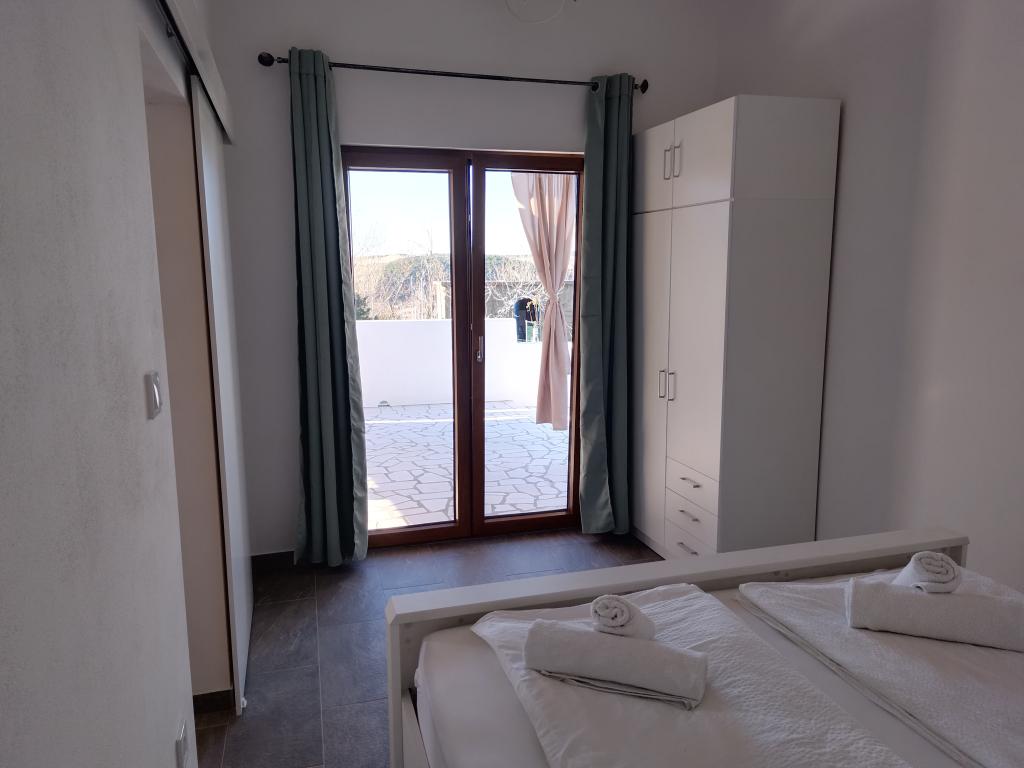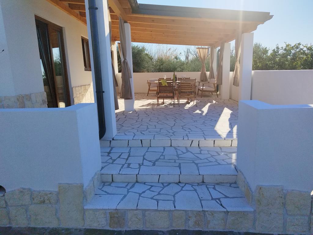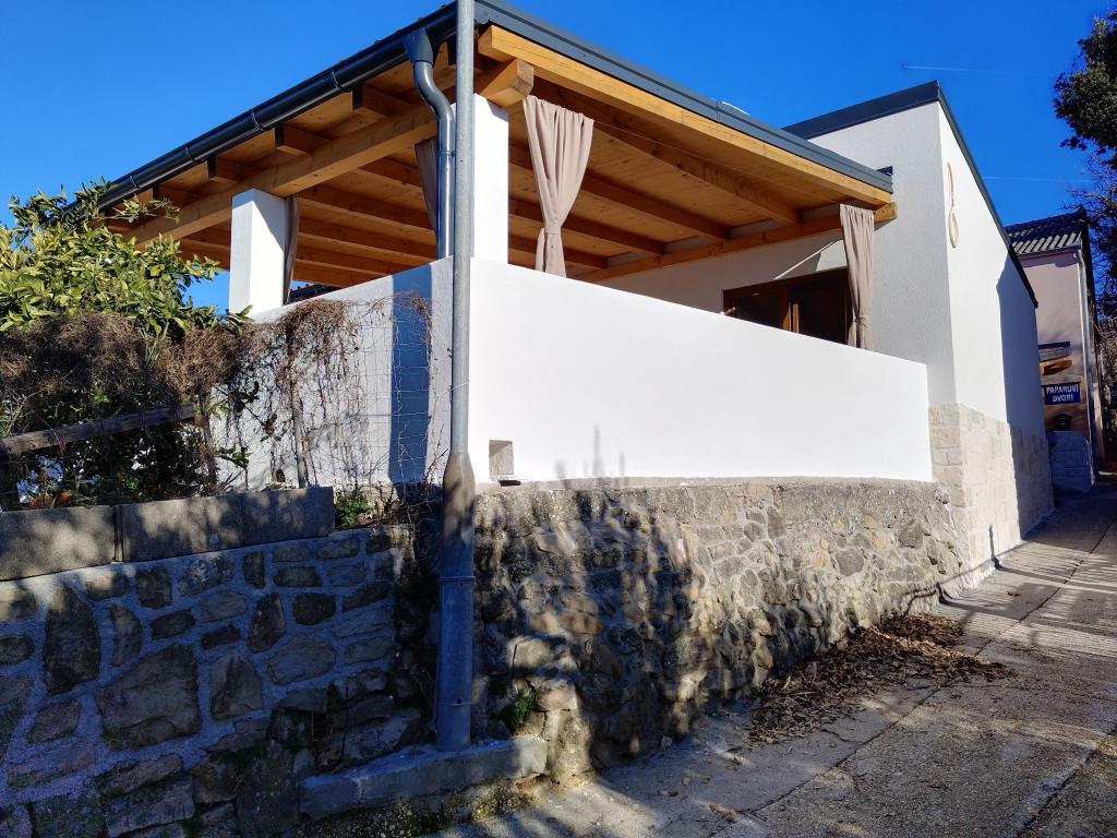 Ez a bájos, felújított ház 40 m²-es belső térrel rendelkezik, két kényelmes hálószobával, egy elegáns fürdőszobával és egy modern konyhával, amely mosogatógépet, mikrohullámú sütőt, hűtőszekrényt és minden szükséges eszközt tartalmaz. Az étkező és a TV-vel felszerelt nappali kellemes helyet biztosít a társasági élethez. Minden szoba légkondicionált a maximális kényelem érdekében. A ház előtt egy tágas, fedett, kőből készült terasz (90 m²) található étkezőasztallal, ülőhelyekkel és grillezővel - ideális hely reggeli kávézáshoz, kiadós reggelihez, egy könyvvel a kézben, vagy esti társasági élethez a naplementében.