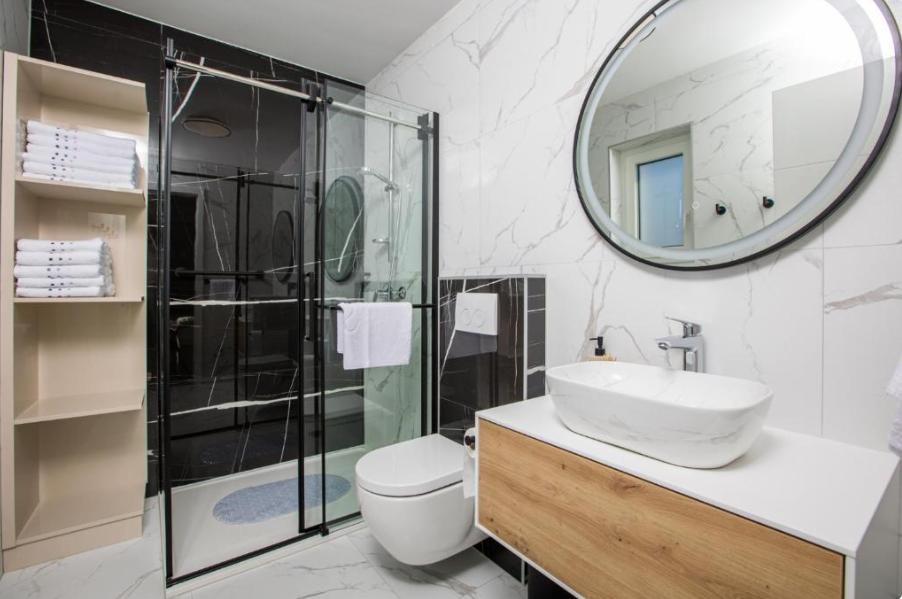 Az Aura Apartman Malinskában található, Krk szigetén, mindössze 300 méterre a tengertől, és ideális egy pihentető nyaraláshoz. A modern és tágas apartman három hálószobából, egy nappaliból, egy teljesen felszerelt konyhából, valamint egy tengerre néző erkélyből és teraszból áll. A vendégek rendelkezésére áll WiFi, légkondicionáló, saját medence és parkoló. A közelben számos strand és látnivaló található, mint például Krk központja és a Krk-vár (13 km), a Košljun kolostor (16 km) és a Punat kikötő (17 km), így ez a helyszín a béke és a kényelem tökéletes kombinációját kínálja.