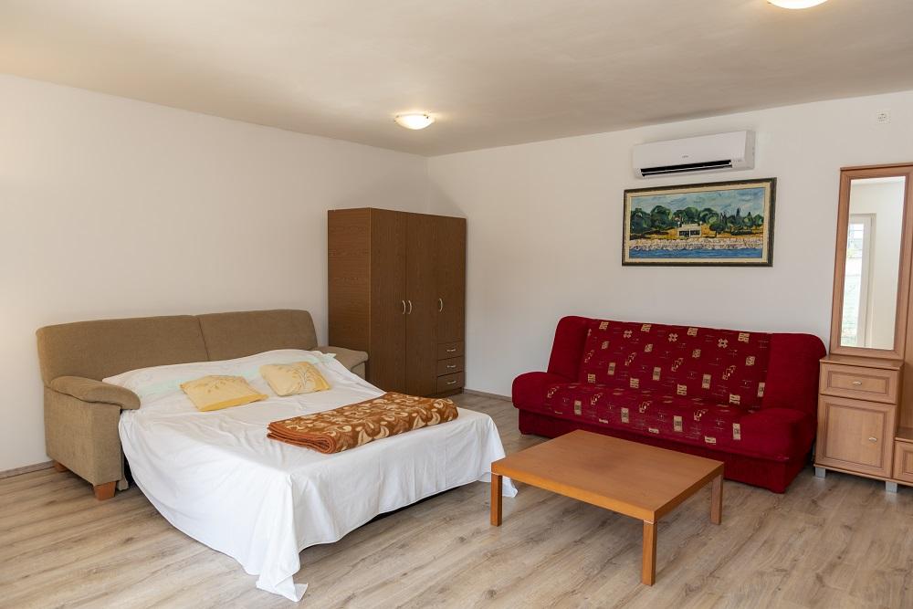 A Villa Emma egy kis földszinti nyaralóház, Medulin csendes részén. Két szoba, egy konyha, egy fürdőszoba és egy nagy fedett terasz, grillezővel, teljes kényelmet biztosít három ember számára. Az 1000 m2-nél nagyobb bekerített ingatlan biztosítja a magánélet védelmét, a nyugalmat és a saját parkolót. 500 méterre a tengertől és 1,5 kilométerre Medulin központjától, és 600 méterre a banktól, a legközelebbi szupermarkettől vagy étteremtől. Teljesen légkondicionált, ingyenes Wi-Fi-vel és TV-vel, a konyhában tűzhely sütővel, mikrohullámú sütővel, hűtőszekrénnyel és mosogatógéppel, valamint mosogatógéppel ellátott fürdőszoba található. A város új, még fejletlen területén, rövid távolságra a központtól és az összes szükséges felszereltségtől, nyári tömegtől és zajtól mentes. Az aszfaltút mindössze 50 m-re fekszik az épület bejáratától, Pula városa és a repülőtér pedig körülbelül tíz km-re fekszik. A házat 2018-ban teljesen felújították, és a zárt földterület és a környező természet békét és magánéletet biztosít. A tulajdonosok nem laknak az ingatlan közelében, de mindig segítséget kapnak. .