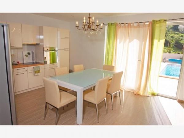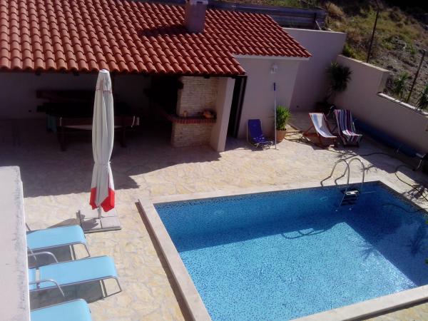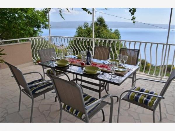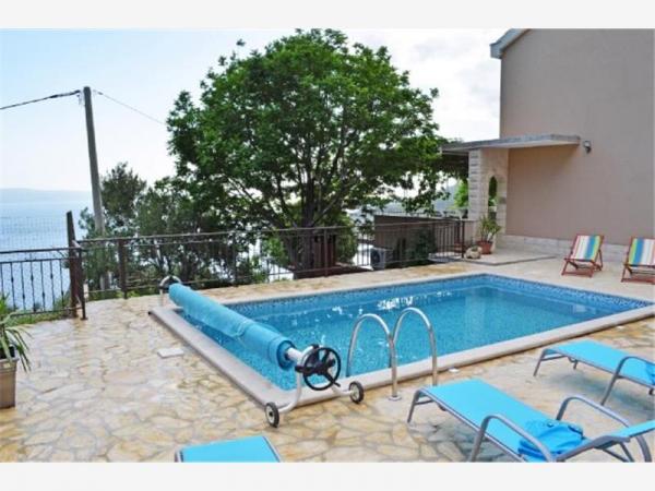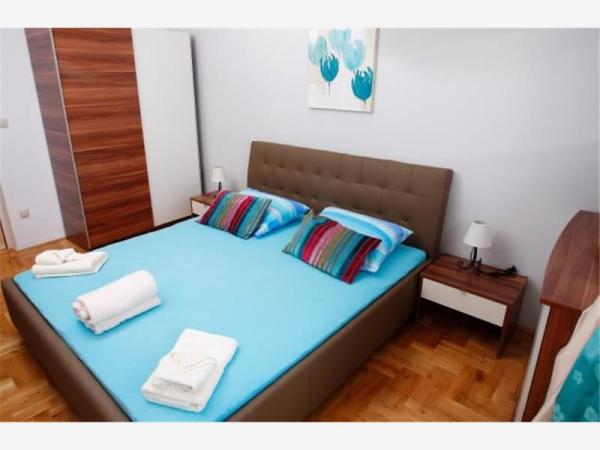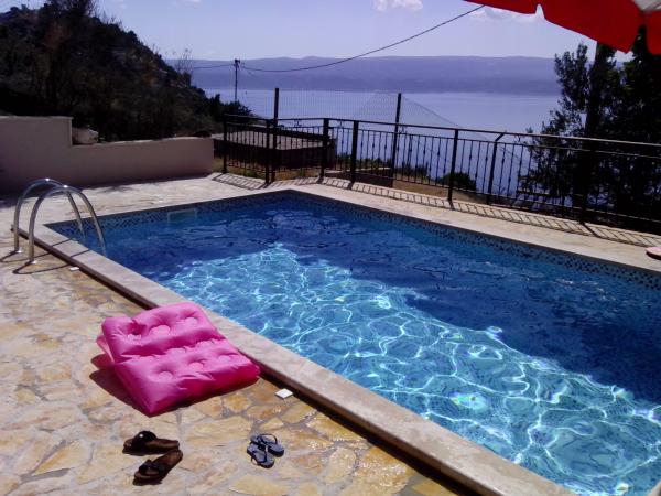 A ház modern és jól felszerelt. A ház egy medence, hogy vendégeink frissítse és pihenjen a forró nyári napokon. A medence mellett a fedett részén grill egy nagy fa asztal és padok. A szálloda egy szabadtéri tuš.Lijepo helyen szocializálódnak. Ki a ház közepén egy nagy terasz, 100 négyzetméteres, ahonnan csodálatos kilátás nyílik a tengerre, a város, hegyek, szigetek, Cetina, a meghatározást Forticu. Ez tényleg szép. Ez csak 20 perc séta a városban, és az autóval 5 perc alatt. Mindenesetre, van egy csendes és kényelmes hely a család és a barátok, és 5 percig van a hangsúly, hogy a város minden olyan tulajdonsággal rendelkezik, amelyek szükségesek a minőségi nyaralást. Továbbá, ha azt szeretnénk, hogy jöjjön a barátaikkal együtt velünk, és pihenjen egy kicsit senki sem zavarja, mert a ház egyedül. Csak előtte, van egy fedett garázs. A ház két szintes. Dole 100 négyzetméter, és a legfelső emeleten 50. A felső emeleten van egy erkély, ahonnan is egy véleményen van egyáltalán. Minden kéznél van. A cél, a