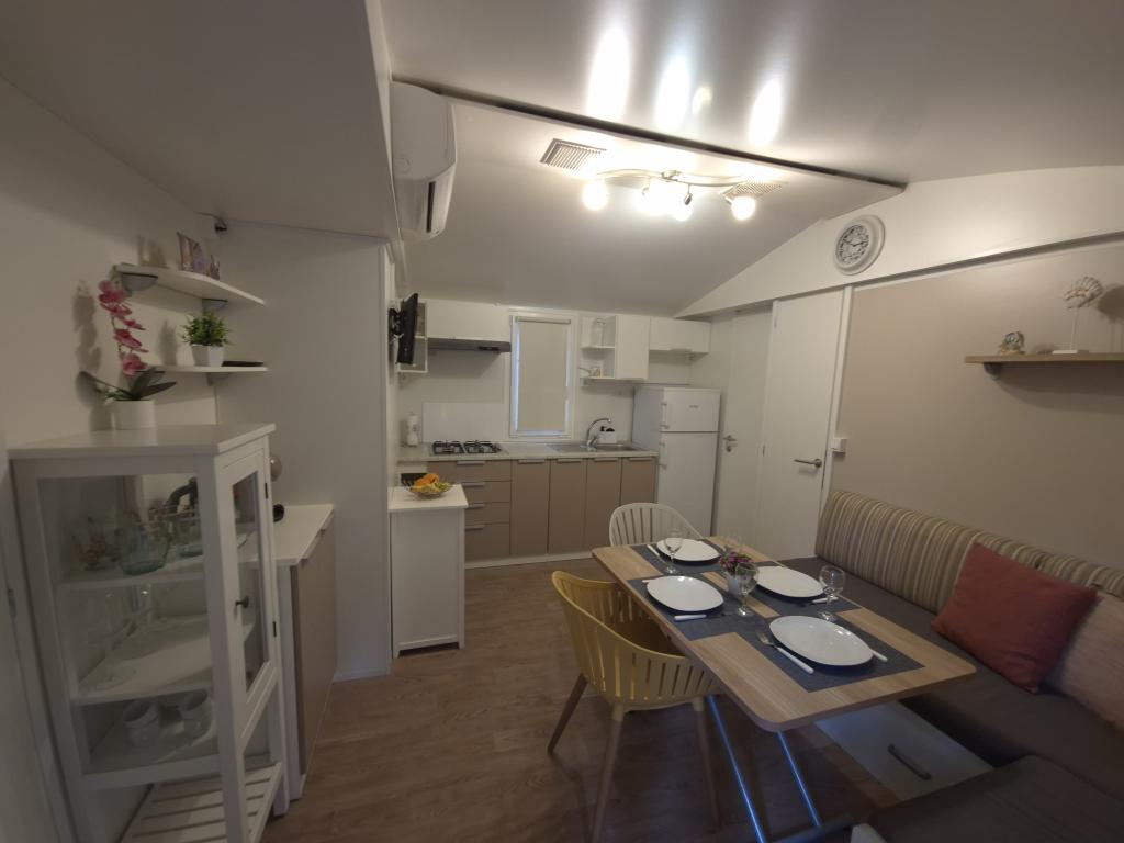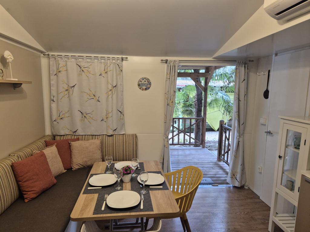 Kényelmes szállás: A Glamour Pakoštane mobilház két hálószobával, két fürdőszobával és tágas nappalival várja vendégeit Pakoštanéban. A szálláshelyen teljesen felszerelt konyha, légkondicionáló és ingyenes wifi is található. Szabadidős létesítmények: A vendégek élvezhetik a teraszt, a bárt és a gyermekmedencét. További szolgáltatások közé tartozik az étkező, a kerti bútorok és az ingyenes privát parkolás a helyszínen. Kiváló elhelyezkedés: A kemping 27 km-re található Zadar repülőterétől, néhány lépésre a Punta strandtól. A közelben található a Kornati kikötő és a Biogradi Örökségmúzeum, mindkettő 8 km-re. A környéken vitorlázási lehetőségek is vannak.