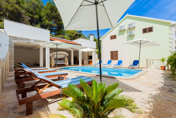 Villa Daria A Korcula-sziget 30 m-re mora.Ima 5 hálószoba és befogadóképessége 11 osoba.Cijela is hozzászokik, és 180 m2-es terasszal, kilátással a medencére mora.Pokraj a grill konyhával, asztalitenisz. A villa közelében van egy bolt és csónakázni, kerékpárok ...