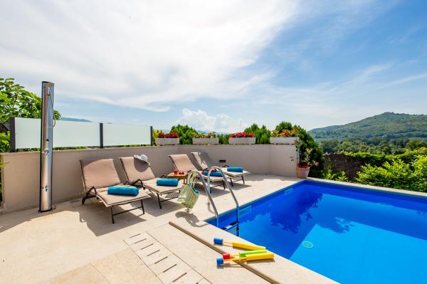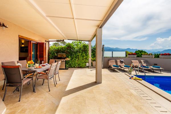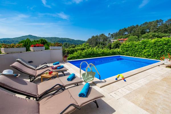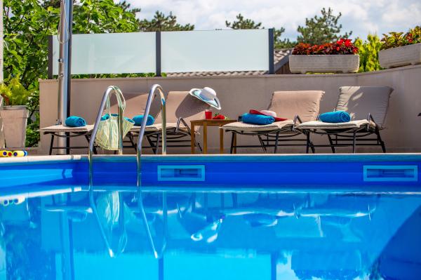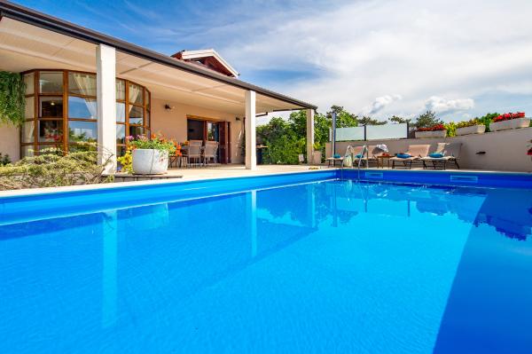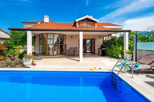 A Villa Marijana egy gyönyörű földszinti nyaralóház, mely Rijeka hátterében található, csendes helyen, Opatija és Crikvenica gyönyörű turisztikai városai közelében. A Villa Marijana egy 30m2-es tágas és meleg medencével rendelkező ház, kényelmes, 7 fő befogadására alkalmas, 220 m2-es nappali. A földszinten van egy fürdőszoba, egy konyha, egy étkező, egy nagy fedett terasszal ellátott nappali (grillezővel), gyönyörű kilátás nyílik a medencére és egy gyönyörű virágoskert és a környező természet. A terasz egész területe nagyon intim és kényelmes. Az ikerházban három hálószoba (erkélyes), fürdőszoba és egy további szoba található. A házban van egy nagy garázs, valamint egy fedett szabadtéri parkoló. A romantikus nyári estéken gazdag gasztronómiai kínálat, különböző látnivalók, gazdag rendezvények és koncertek. Vendégeink örömmel térnek vissza, és visszajönnek, mert biztosak abban, hogy nyaralásuk kényelmesen, a természet szépsége és a béke lesz.