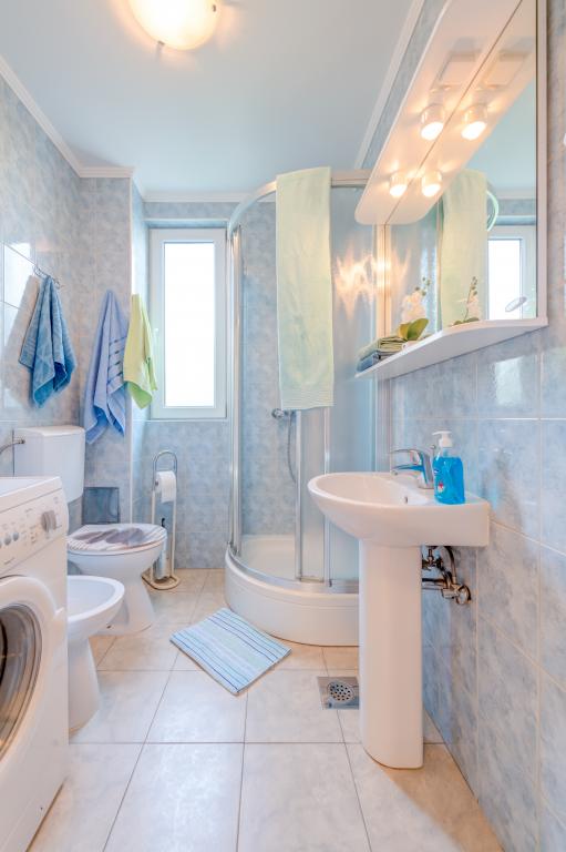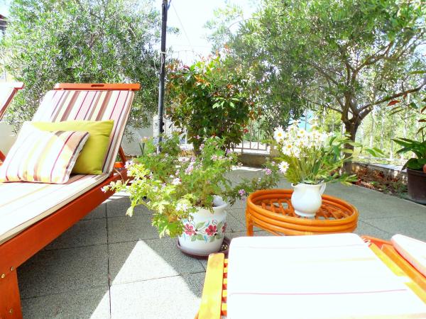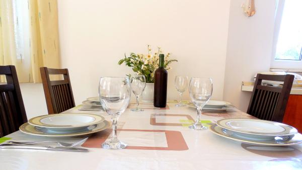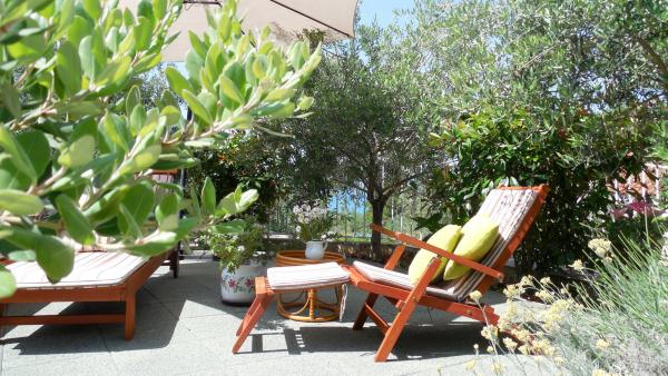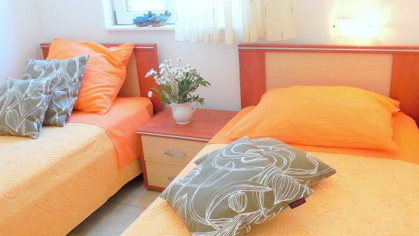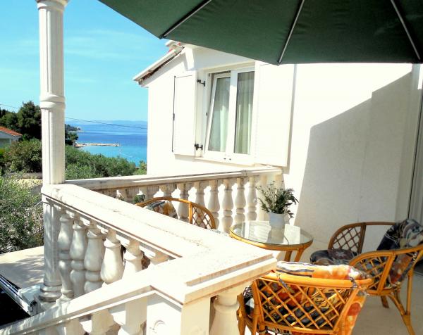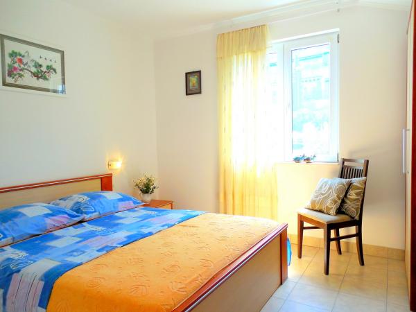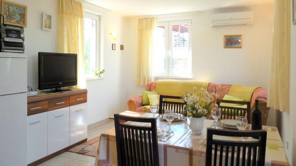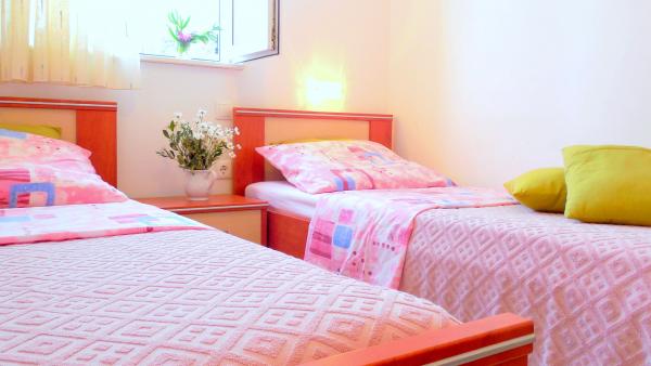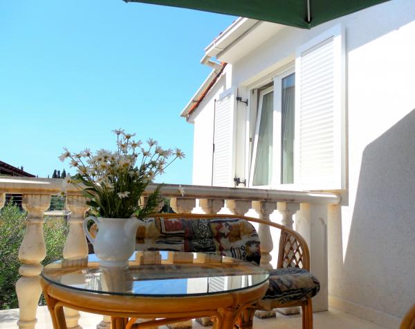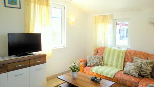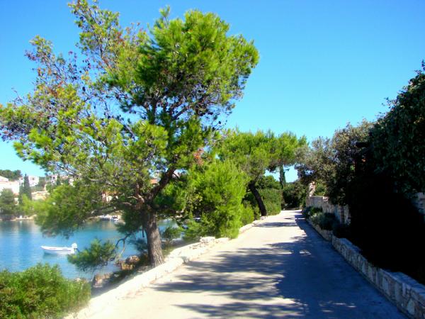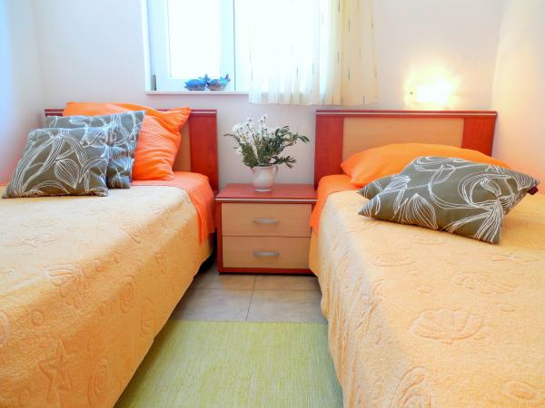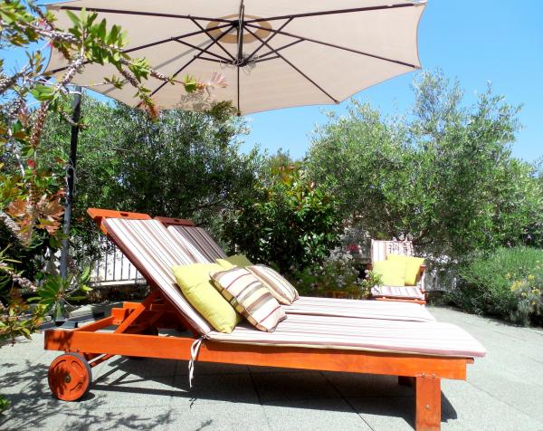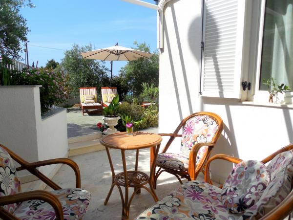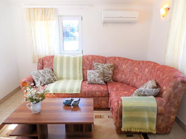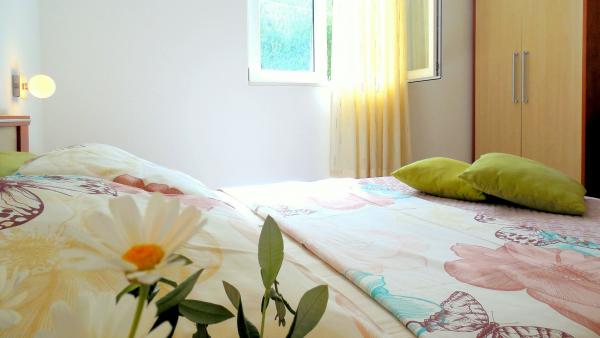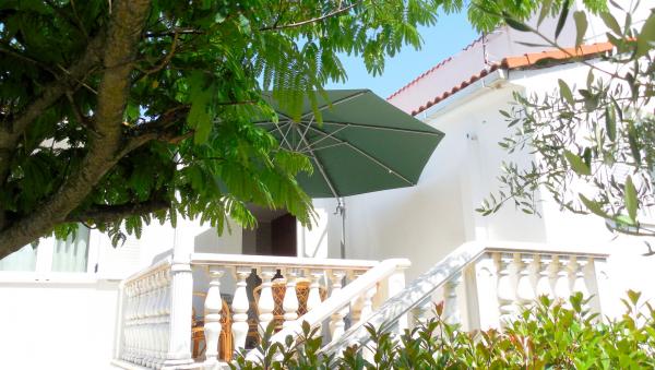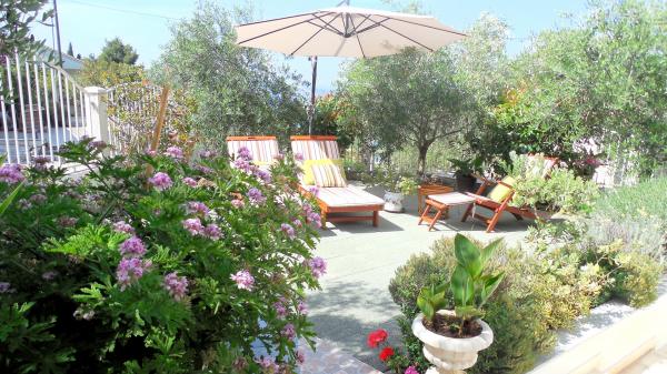 Két gyönyörű, 57m2-es apartmanban a Sunray villa körül egy kellemesen parkosított, 230 m2-es kertet foglal magában, ahol nagy hely van a kikapcsolódásra és a pihenésre, olajfákkal, mimosákkal és virágokkal körülvéve. A teraszon csodálatos napsütés található a kertben, a dalmát barbecue mellett, egy nagy szabadtéri étkezőasztal és teak nyugágyak. Néhány frissítő a külső zuhany alatt található. Családja és barátai szeretni fogják ezt a helyet. A Sunray villától mindössze 50 méterre található egy szép, világos és tágas kavicsos strand, amely közvetlenül a türkizkék tengerbe nyúlik. A strandon gyönyörű kis bárok találhatók, a közeli éttermek pedig meleg esti vacsorára hívják a csillagokat.