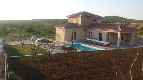 Modern és kényelmes nyaraló található, a hátországban Sukosan, mindössze 4 km-re a strandtól, éttermek és turisztikai események. Ez áll 4 hálószoba, 4 fürdőszoba, WC, konyha összekapcsolva a társalgóval. A nappaliból ki a teraszra egy fedett grillező és medence 32 m2