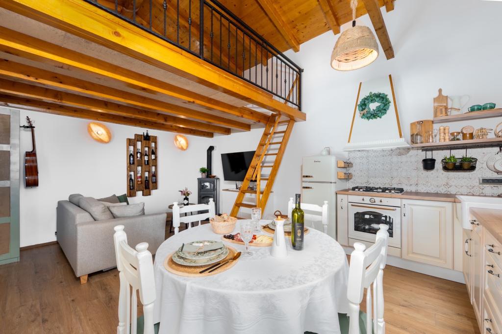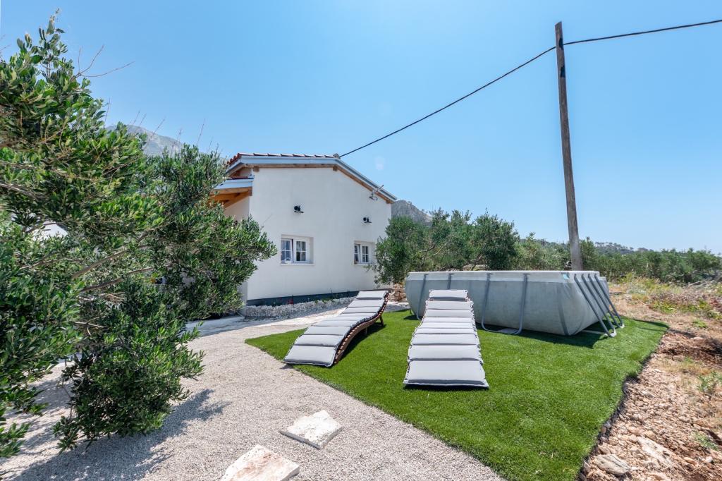 Üdvözöljük varázslatos nyaralóházunkban, a természet szívében, ahol a béke, a csend és a felejthetetlen kilátás tökéletes menedéket teremt két személy számára. A zöldövezetben, egyedülálló helyen fekvő ház lenyűgöző panorámát kínál Bračra, Hvarra és a csodálatos Biokovóra. Ideális a magánéletre és a mindennapi élet elől menekülni vágyó párok számára, ez a béke oázisa teljes kikapcsolódást biztosít - akár a reggeli kávéját madárcsicsergéssel, akár az esti naplementéket élvezi meghitt környezetben. Mindössze 4 perc autóútra található a gyönyörű strandoktól és a bolttól, amely lehetővé teszi a tökéletes egyensúlyt az elszigeteltség és a praktikum között. A vendégek rendelkezésére áll egy medence a meleg napokon való felfrissüléshez, egy grillező a szabadtéri vacsorákhoz, valamint egy privát kert ökológiai gazdálkodással, amely évszázados olajfák árnyékában található. Itt megtapasztalhatja a természet igazi érintését - a Földközi-tenger illatait, a levelek susogását és a lelket nyugtató hangokat. Ha egy olyan helyet keres, ahol teljesen kikapcsolódhat, kapcsolatba léphet a természettel és különleges pillanatokat teremthet két személy számára - ez a ház a t
