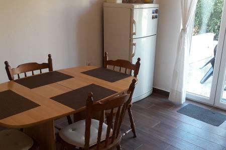 A házban 2 hálószoba, nappali, étkező, fürdőszoba, 2 terasz és ingyenes parkolási lehetőség található. A kerti terasz távol van a forgalomtól és a zajtól, tökéletes reggel reggeli kávét inni egy madárszemmel vagy egy szórakoztató bébi játékkal. A közelben található az árupiac, üzletek és minden szükséges tartalom.