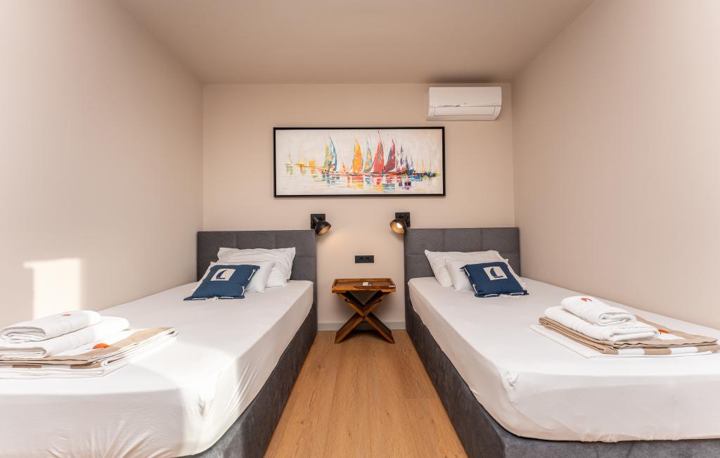 A körülbelül 270 m²-es ház Zatonban található, Zadartól 12 km-re északnyugatra. Az épület új, 2025 júniusában készült el. A bekerített udvarban 4 parkolóhely, 2 elektromos autó töltőállomás, egy 30 m²-es fűtött medence és egy nagy terasz található, ahol délutánig élvezheti az árnyékot. A házban két azonos elrendezésű apartman található, mindegyikben nappali, teljesen felszerelt konyha, 3 hálószoba, 2 fürdőszoba és egy további WC található. Minden szoba légkondicionált, és mindegyik okos TV-vel felszerelt. A ház 12 fő befogadására alkalmas. A ház minden emeletén a gyerekszobában található egy 5. számú fürdőszoba. A ház tetején tengerre néző terasz, egy további konyhasarok, kerti bútorok és masszázskád található a nappali és esti kikapcsolódáshoz. Családdal és/vagy barátokkal együtt, de szükség esetén külön-külön is (mindegyik a saját apartmanjában) élvezheti a létesítményt. Napközben biztosan élvezni fogja a medencét és az alsó terasz nyújtotta árnyékot, este pedig a tetőteraszon pihenhet.